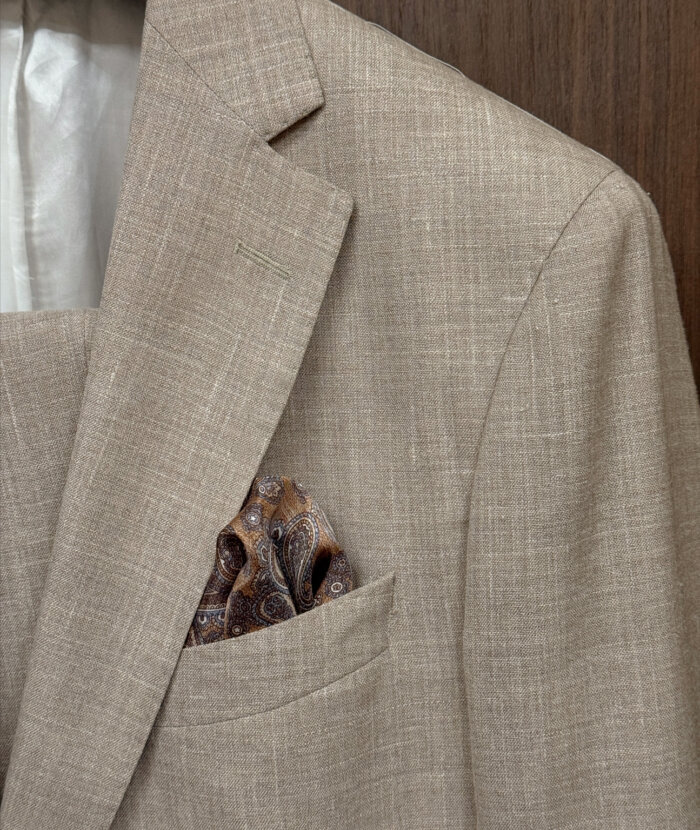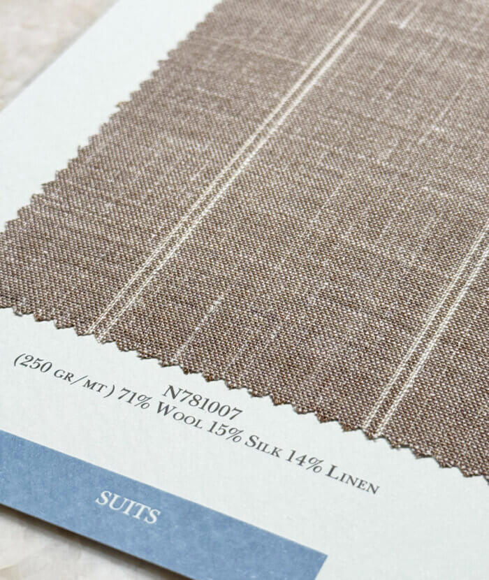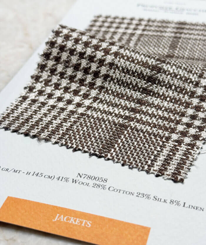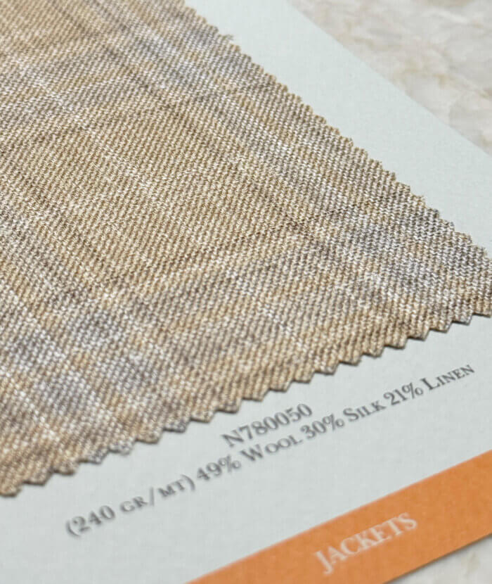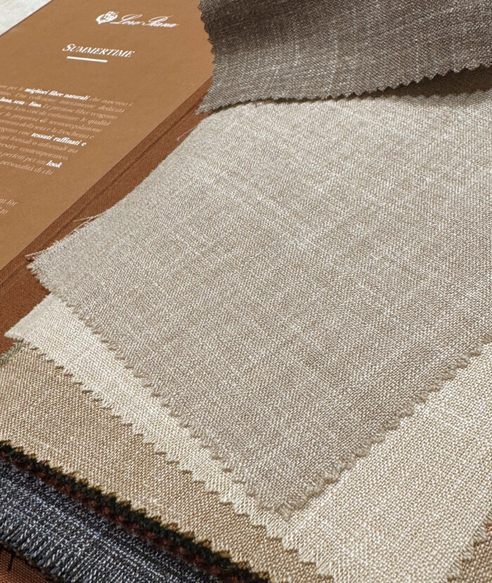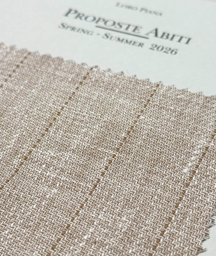 De absolute musthave is een stof uit de Summertime collectie: een mix van wol, zijde en linnen die direct die echte sprezzatura uitstraalt. Geloof me, dit zijn de fijnste natuurlijke vezels voor een ongestructureerd maatjasje uit de Proposte Giacche collectie of een maatpak of trouwpak uit de Proposte Abiti collectie. Stoffen die koelte, een luchtige look en die karakteristieke gemêleerde linnenuitstraling perfect combineren; die moet je gewoon zelf komen voelen.